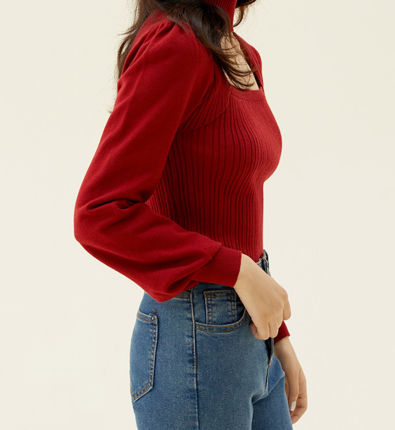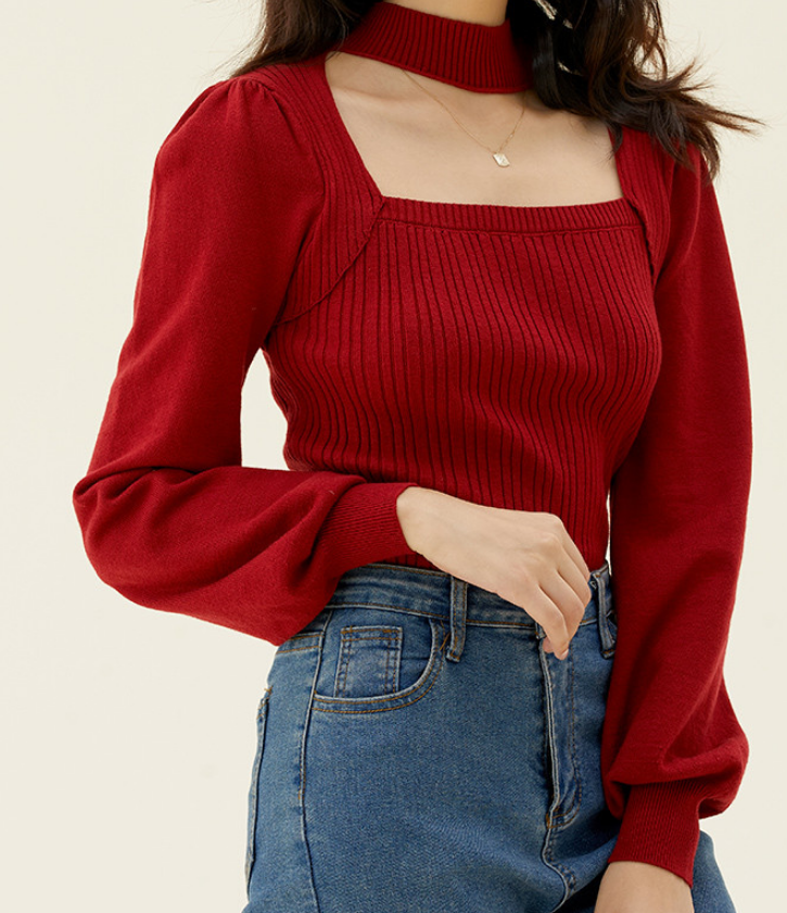 Slim-Fit-Pullover mit schlankem, langärmligem Strickpullover und hängendem Halsausschnitt